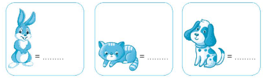 Em thực hiện tính kết quả mỗi phép cộng rồi viết số ứng với mỗi con vật cho thích hợp.