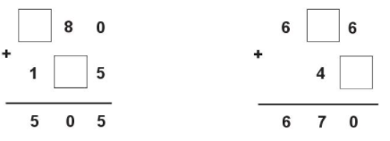 Đặt các tấm bìa ghi chữ số vào các ô vuông để có hai phép tính cộng khác nhau (mỗi tấm bìa chỉ đặt 1 lần).