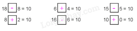 Viết dấu phép tính thích hợp (+ hay – vào ô trống)