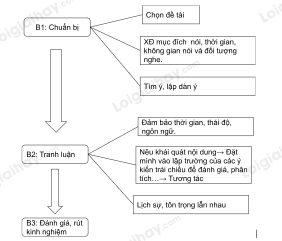 - Chuẩn bị chu đáo, kĩ lưỡng: Nghiên cứu về vấn đề; Xây dựng hệ thống luận điểm và lí lẽ chặt chẽ, thuyết phục; Dự đoán phản biện