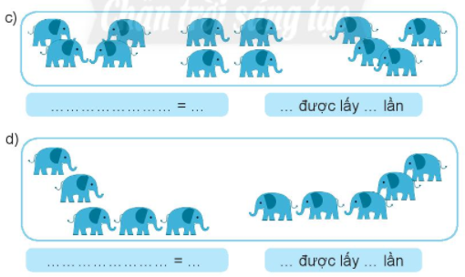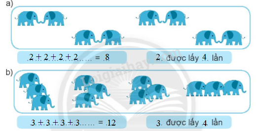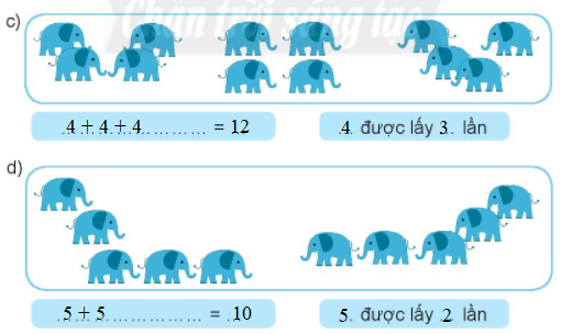 Quan sát tranh rồi viết phép tính thành tổng các số hạng bằng nhau theo mẫu.