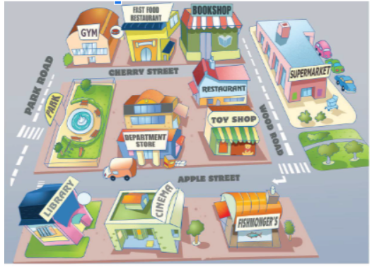 • the gym to the toy shop (phòng tập thể dục đến cửa hàng đồ chơi)