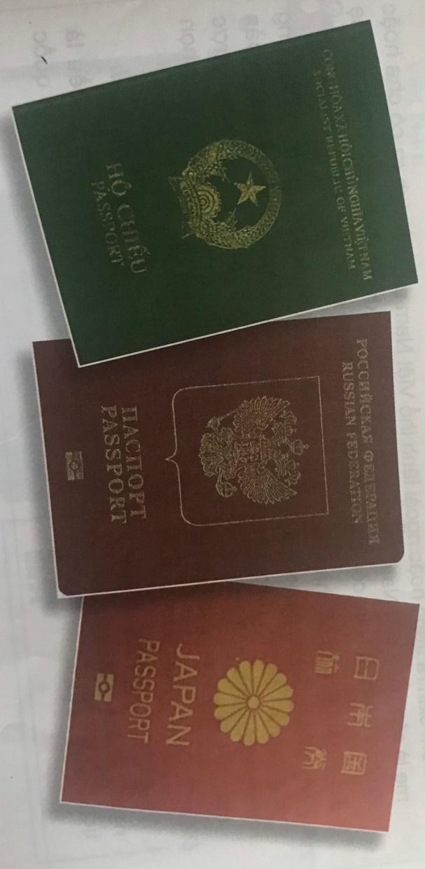 - Hộ chiếu quốc gia lần lượt là: Việt Nam, Nga, Nhật Bản.