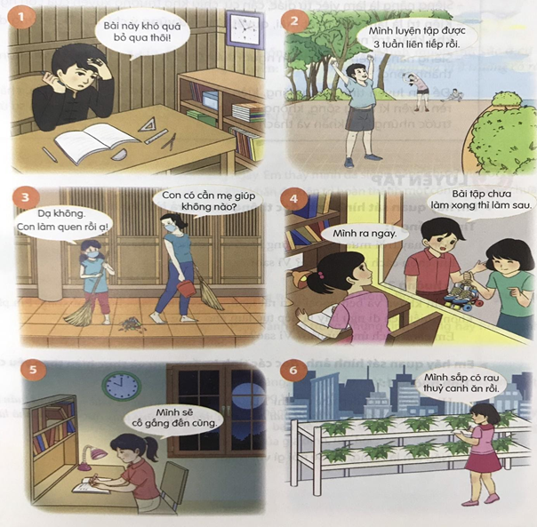 - Biểu hiện của siêng năng, kiên trì: Hình 3, hình 5 và hình 6
