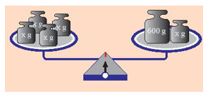 - Tìm biểu thức biểu thị khối lượng hai đĩa cân.