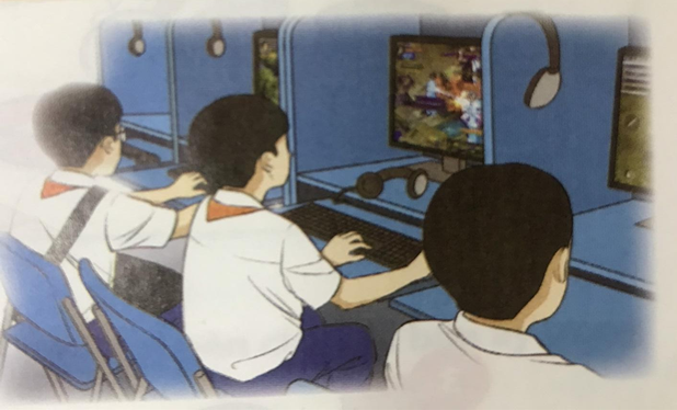 Các bạn đang chơi game. Việc làm của các bạn là đang lãng phí thời gian, lãng phí điện, lãng phí tiền. Vì game là một trò chơi tiêu khiển chỉ để giải trí lúc rảnh, vậy mà các bạn học sinh trong hình lại trốn học, bỏ quá nhiều thời gian để chơi.