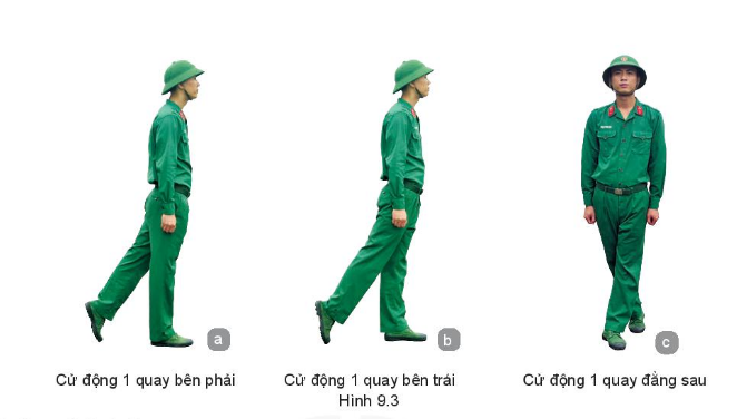 - Tự hô khẩu lệnh và thực hiện các động tác quay bên phải, quay bên trái