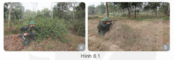 Chiến sĩ trong hình 8.1 lợi dụng bụi cây, ụ đất để làm vật che khuất, che đỡ che dấu hành động người chiến sĩ, bảo vệ người chiến sĩ khỏi hỏa lực của địch trong quá trình chiến đấu