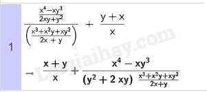 \(\frac{{{x^4} - x{y^3}}}{{2{\rm{x}}y + {y^2}}}:\frac{{{x^3} + {x^2}y + x{y^2}}}{{2{\rm{x}} + y}} + \frac{{y + x}}{x}\)