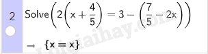 b) \(2\left( {x + \frac{4}{5}} \right) = 3 - \left( {\frac{7}{5} - 2{\rm{x}}} \right)\)