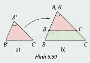 1. Vì sao trong Hình \(6.59b\) cạnh \(B'C'\) song song với cạnh \(BC?\)
