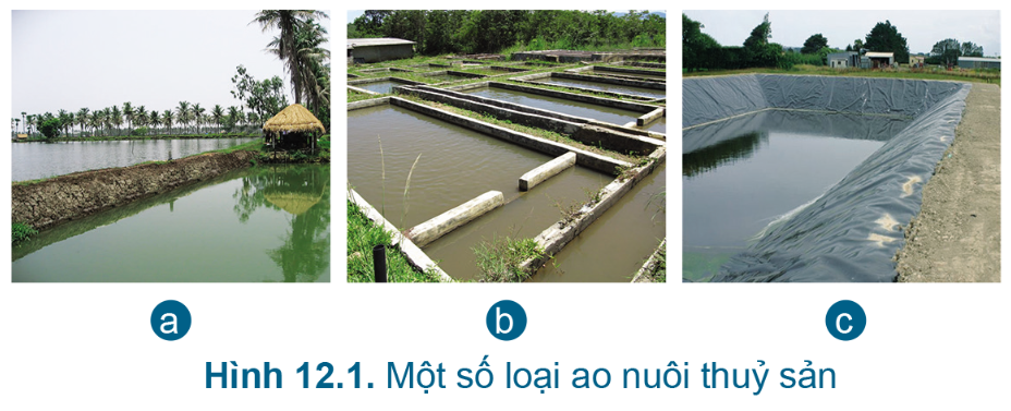 Em hãy cho biết sự khác biệt về vật liệu xây dựng ao nuôi thủy sản trong Hình 12.1