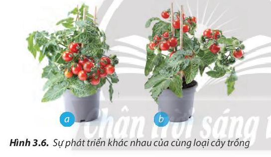 8.So sánh sự phát triển của hai cây trong Hình 3.6. Vì sao cùng một giống cây, cùng loại đất trồng và điều kiện khí hậu, các cây trồng lại có thể phát triển khác nhau?