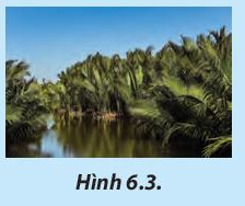 Quan sát vào hình 6.3 ta thấy hình ảnh rừng cây mọc bên trên sông.