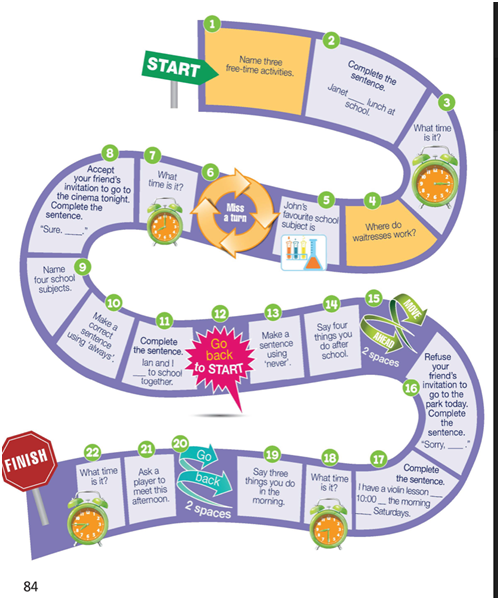 (Chơi trò chơi theo nhóm nhỏ hoặc pái. Sử dụng cục tẩy làm điểm đánh dấu. Lăn xúc xắc để di chuyển trên bàn cờ.)