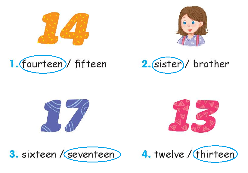 (Nhìn và khoanh tròn. Sau đó nói.)