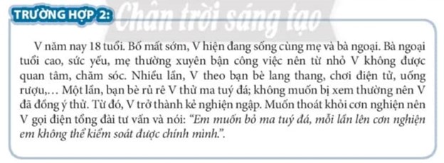 - Đọc trường hợp 2 và chỉ ra tệ nạn xã hội V gặp. Nêu ảnh hưởng tệ nạn xã hội đối với bản thân, gia đình và xã hội.