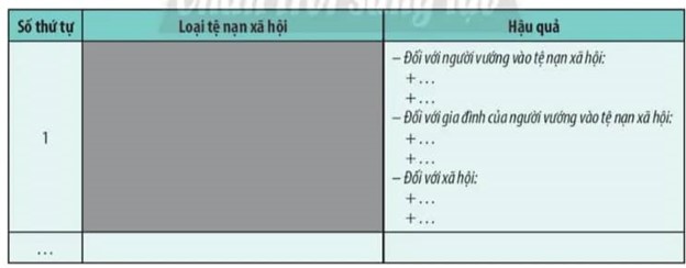 - Viết vào bảng tác hại của các tệ nạn xã hội.