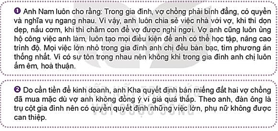 - Đọc thông tin và nêu được quyền và nghĩa vụ giữa vợ và chồng trong hai trường hợp.