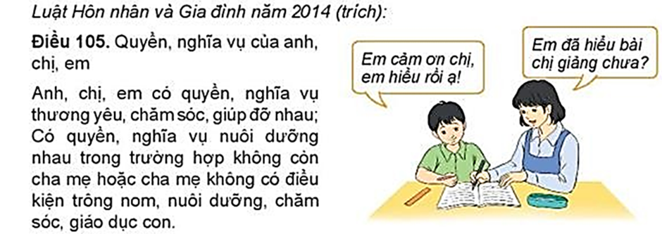 - Chia sẻ hiểu biết của em về quyền và nghĩa vụ giữa anh chị em trong gia đình.