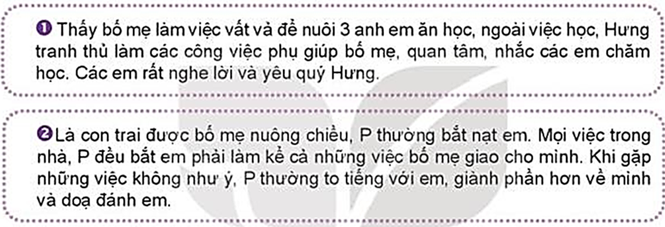 - Đọc thông tin và đưa ra nhận xét về việc làm của Hưng và P trong đó.