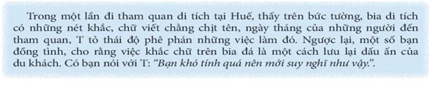 Em không đồng tình với hành động của những người đã viết lên bức tường, di tích đó. Việc khắc tên như vậy sẽ làm cho cảnh quan mất đi vẻ đẹp tự nhiên ban đầu. Chúng ta nên bảo tồn, giữ gìn và không được viết lên các di tích đó.