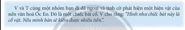 Em sẽ vào vai T và cùng đưa ra cách giải quyết. Em sẽ khuyên V nên đem cổ vật đến cơ quan chức năng để giao nộp chứ không được mang về làm của riêng bởi vì đây là những vật có giá trị lịch sử lâu đời của đất nước ta, là các di sản văn hóa.