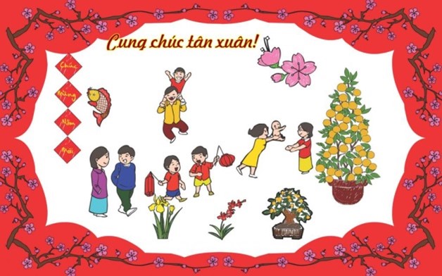 1. Em hãy thiết kế tấm thiệp để giới thiệu với bạn bè về Tết cổ truyền Việt Nam như một di sản văn hoá.