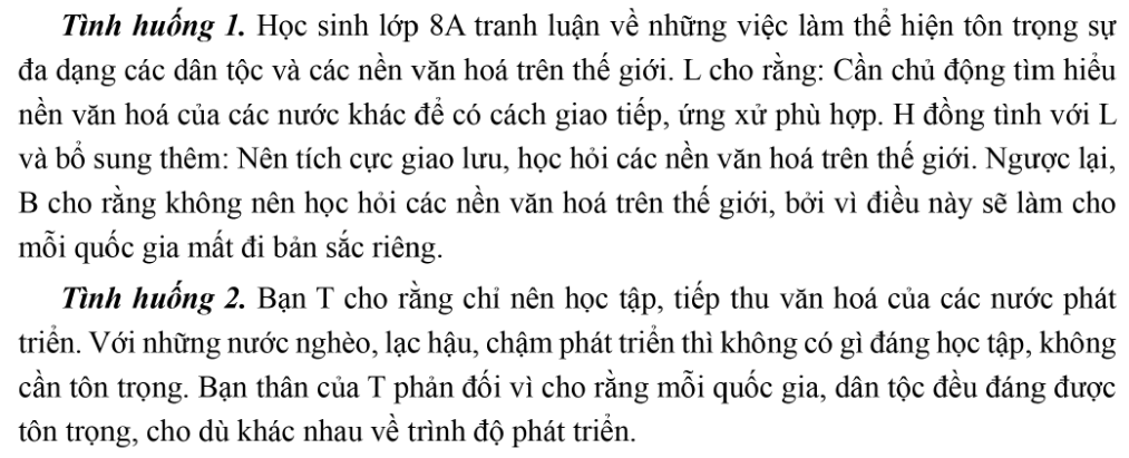 Em sẽ làm gì để thể hiện việc tôn trọng sự đa dạng của các dân tộc trong mỗi trường hợp dưới đây?