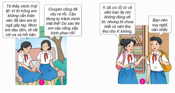 - Hình ảnh 2: Bạn nữ nên tha thứ cho K vì K đã nhận ra lỗi của mình và xin lỗi bạn.