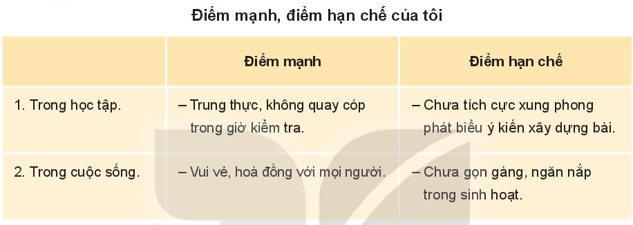 Em hãy xác định và chia sẻ với bạn bè về những điểm mạnh, điểm hạn chế của bản thân trong học tập, trong cuộc sống.