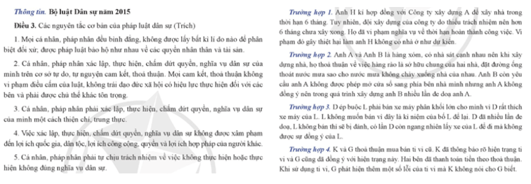Theo thông tin, em hãy cho biết trường hợp nào do pháp luật dân sự điều chỉnh?