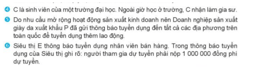Thông tin 6. Siêu thị E thông báo tuyển dụng nhân viên bán hàng. Trong thông báo tuyển dụng của Siêu thị ghi rõ: người tham gia dự tuyển phải nộp 1.000.000 đồng phí dự tuyển.