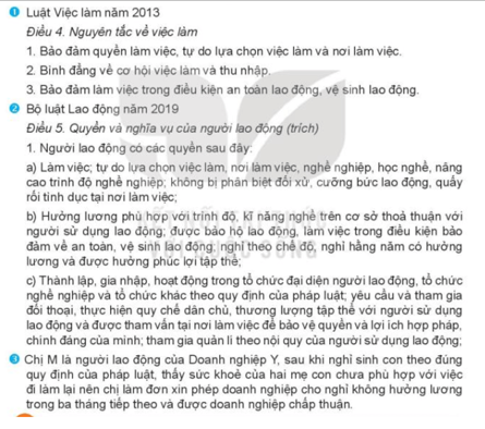 Theo em, vì sao pháp luật phải quy định quyền của người lao động? Việc chị M làm đơn xin phép doanh nghiệp cho nghỉ không hưởng lương trong ba tháng tiếp theo và được doanh nghiệp chấp thuận có phù hợp với nguyên tắc bảo vệ người lao động không? Vì sao?