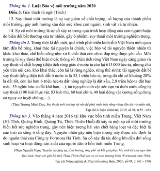 - Đoạn Thông tin 3 đề cập đến vấn đề: sự cố môi trường. Cụ thể là: sự cố môi trường xảy ra tại khu vực 4 tỉnh miền Trung Việt Nam, do hoạt động xả thải trái phép của công ty Formosa Hà Tĩnh (tháng 4/2016).