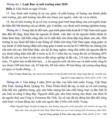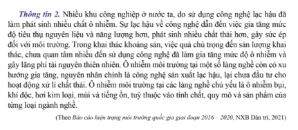 - Đoạn Thông tin 2 đề cập đến vấn đề suy thoái môi trường, với các biểu hiện như: