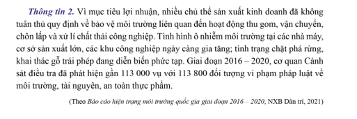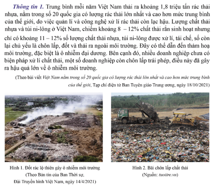 Em hãy căn cứ vào thông tin 1 để xác định các vấn đề môi trường nào được nhắc đến ở thông tin 2 và thông tin 3.
