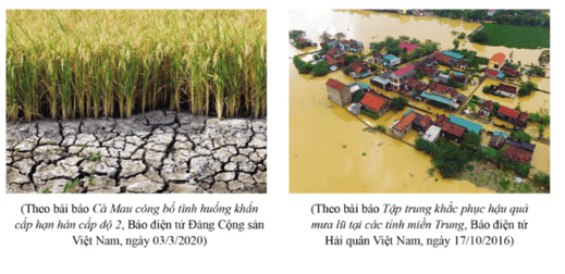 Những hình ảnh trên khiến em liên tưởng đến hậu quả nào của môi trường tự nhiên tác động đến con người và xã hội? Theo em, những hậu quả đó có thể ảnh hưởng đến sự phát triển kinh tế - xã hội như thế nào?