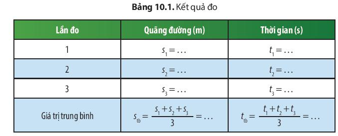 Tiến hành đo tốc độ của chiếc xe đồ chơi bằng đồng hồ bấm giây và hoàn thành bảng kết quả theo mẫu Bảng 10.1