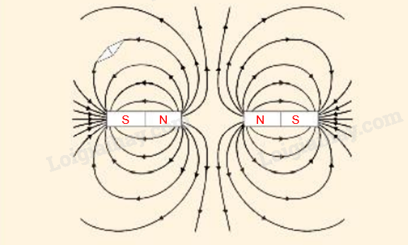 Cực của kim nam châm: bên trái của kim nam châm là màu xanh nên đây là cực nam (S), bên phải kim nam châm màu đỏ nên đây là cực bắc (N).
