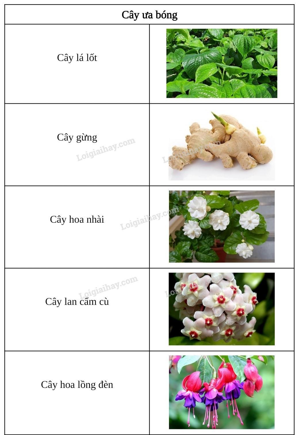 Câu hỏi Hãy kể tên những loài cây ưa bóng và ưa sáng khác mà em biết. |