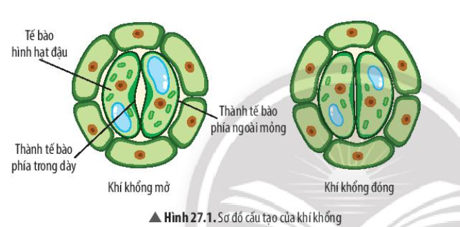 - Quan sát hình 27.1 và mô ta cấu tạo khí khổng.