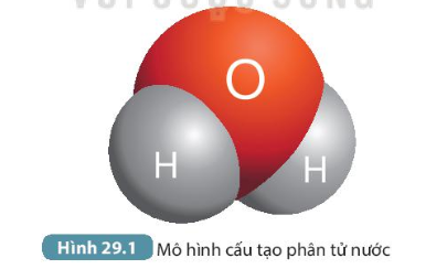 Câu hỏi Quan sát Hình 29.1 và liên hệ với kiến thức đã học để trả lời các câu hỏi sau: Câu 1: Phân tử nước được cấu tạo từ những nguyên tố nào? Trong phân tử nước, các nguyên tử liên kết với nhau bằng liên kết gì? Câu 2: Tính phân cực của phân tử nước được thể hiện như thế nào?