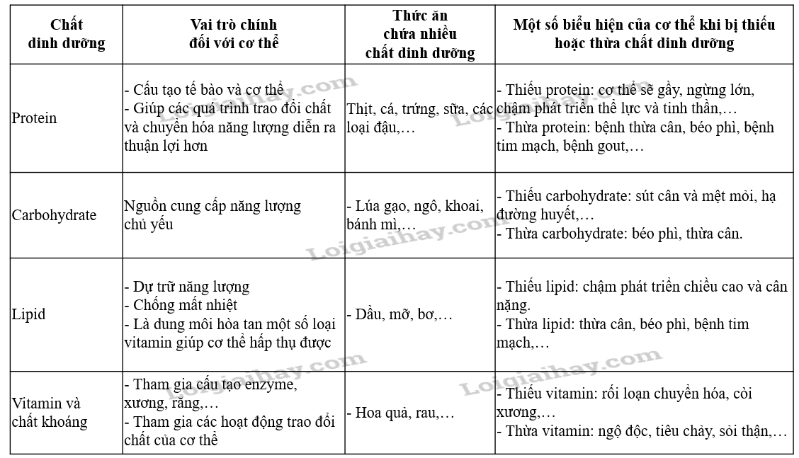 - Chất dinh dưỡng là các chất hoá học được cơ thể sinh vật hấp thụ từ môi trường bên ngoài, có vai trò cung cấp nguyên liệu cấu tạo nên tế bào, tham gia các phản ứng hoá học trong tế bào và cung cấp năng lượng cho các hoạt động sống, sinh trưởng và phát triển của cơ thể sinh vật