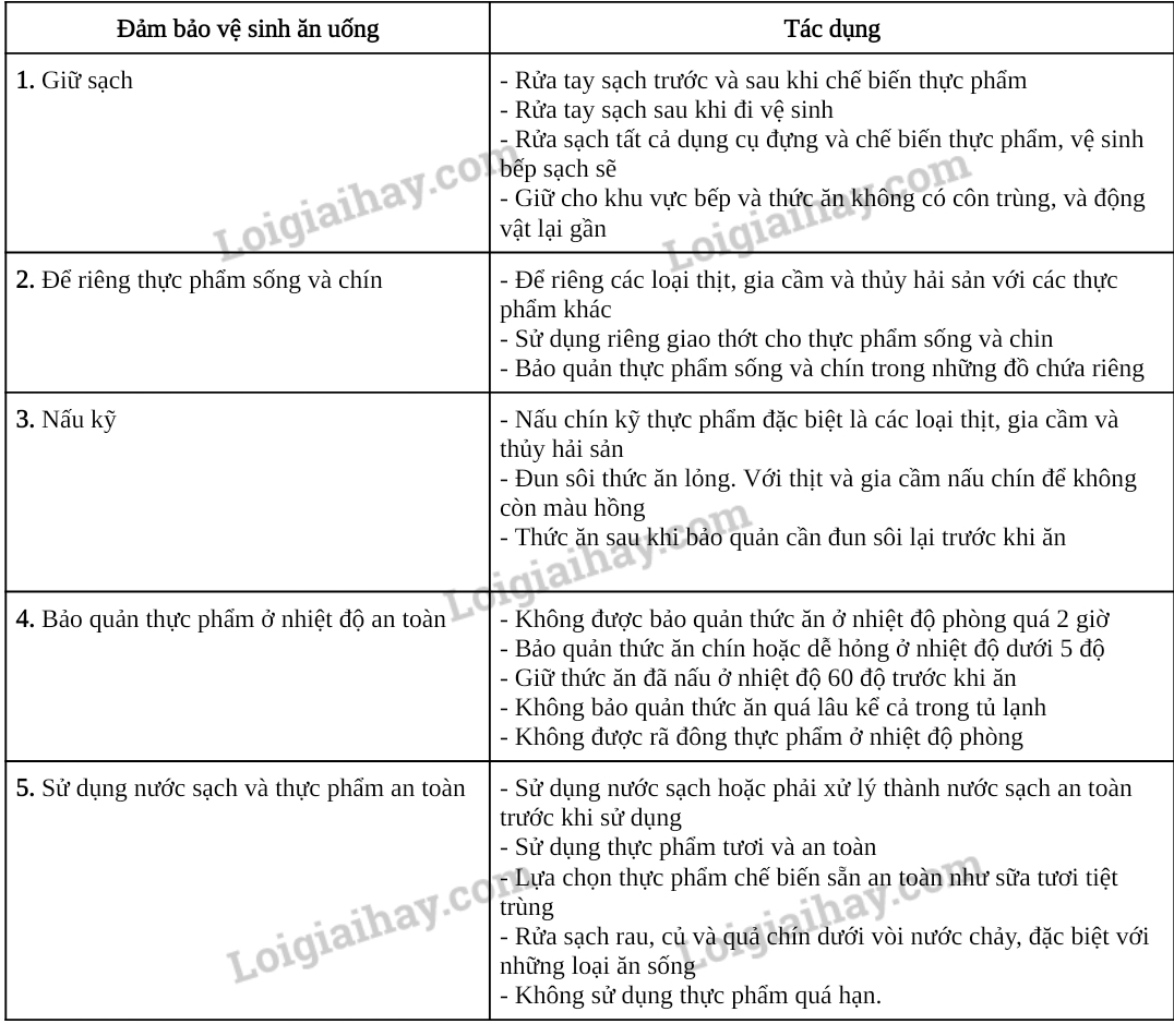 - Các biện pháp đảm bảo vệ sinh ăn uống chủ yếu giúp đảm bảo thực phẩm được tiêu thụ được giữ tươi sạch, đảm bảo vệ sinh.