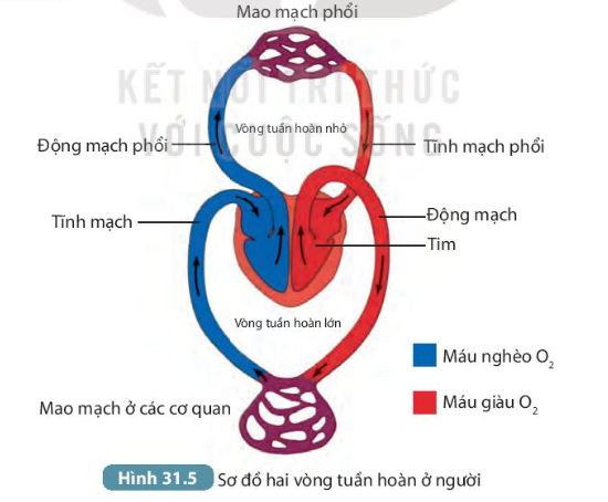Quá trình vận chuyển các chất trong hệ tuần hoàn ở người thông qua vòng nhỏ và vòng tuần hoàn lớn.