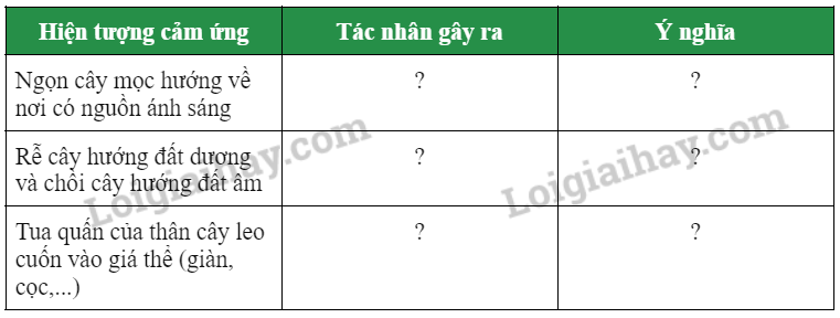 7. Hãy liệt kê một số ví dụ ứng dụng cảm ứng trong trồng trọt. Giải thích cơ sở của việc ứng dụng đó. |