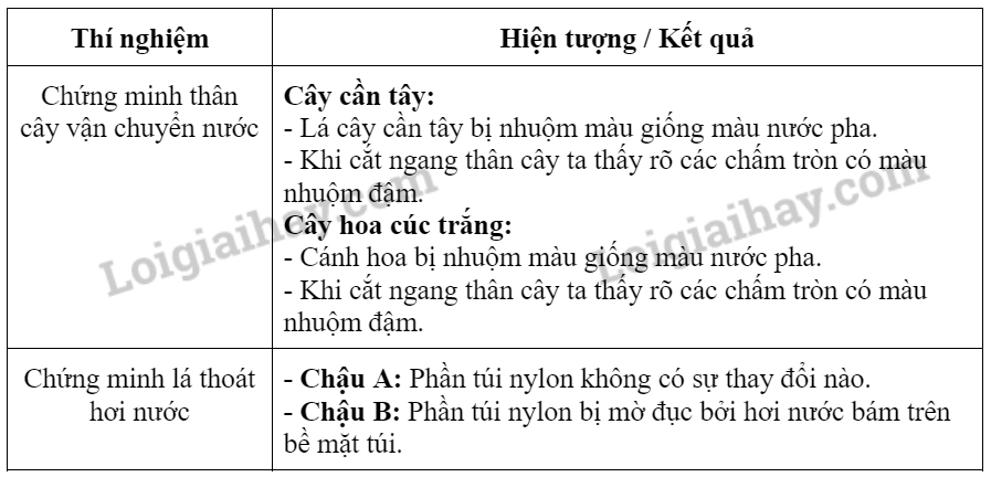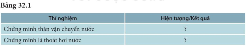 1. Thí nghiệm chứng minh thân vận chuyển nước