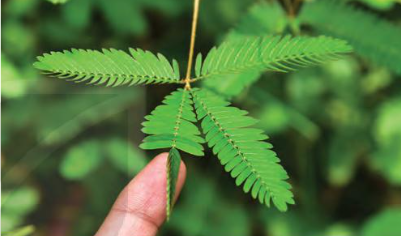 Khi ta chạm tay vào lá cây trinh nữ (xấu hổ), lá cây sẽ cụp lại (hình dưới đây). Đây là hiện tượng gì? Hiện tượng này có ý nghĩa như thế nào đối với sinh vật? Quan sát Hình 33.1 và hoàn thành theo mẫu Bảng 33.1