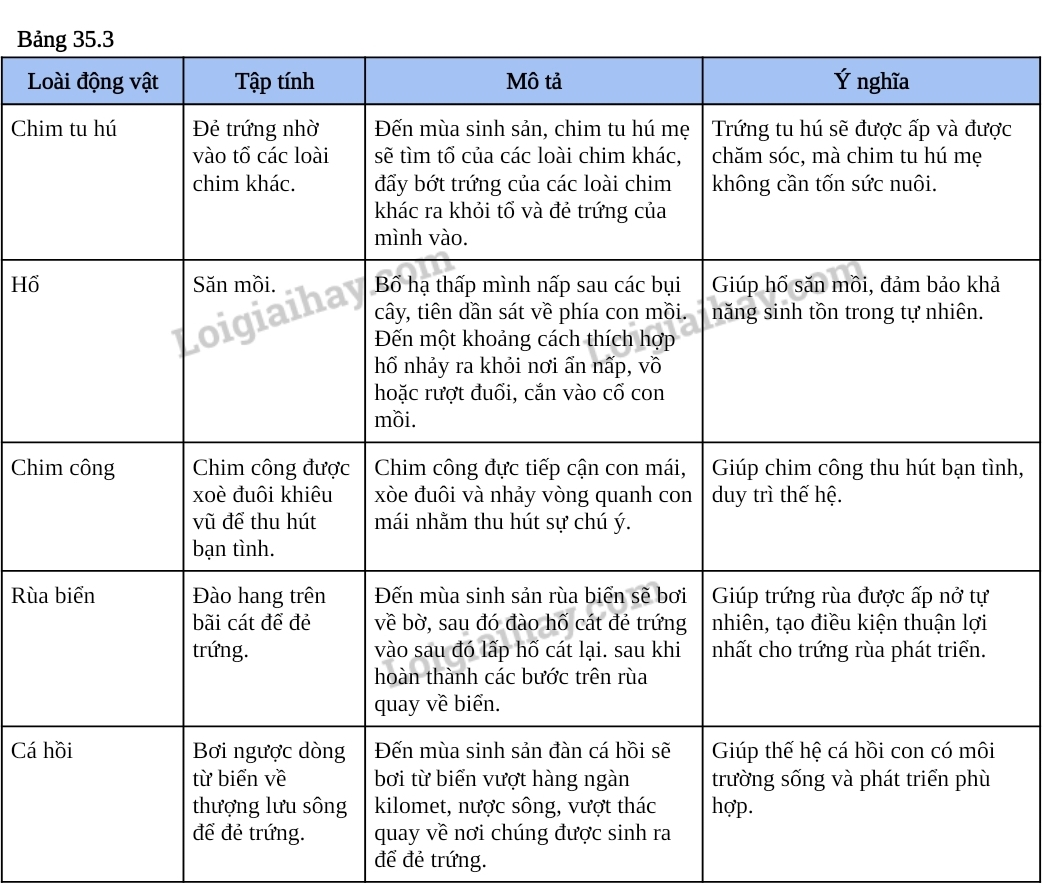 - Ghi chép kết quả quan sát được vào phiếu theo mẫu Bảng 35.3.